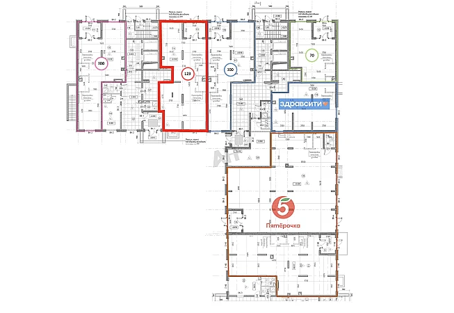 - Ключевой точкой притяжения станет магазин «Пятерочка», расположенный в стилобате.