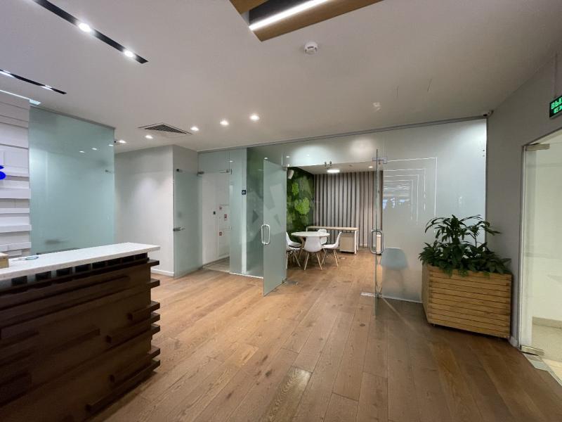 В офисе предусмотрена кухонная зона с мебелью и санузлы внутри помещения. Здание находится на первой линии и отличается презентабельным стеклянным фасадом. Высота потолков составляет 4 метра, что создает просторную и комфортную атмосферу. Уникальная архитектура с консольным выносом этажей и прозрачный центральный атриум с панорамными лифтами подчеркивают статусность локации.