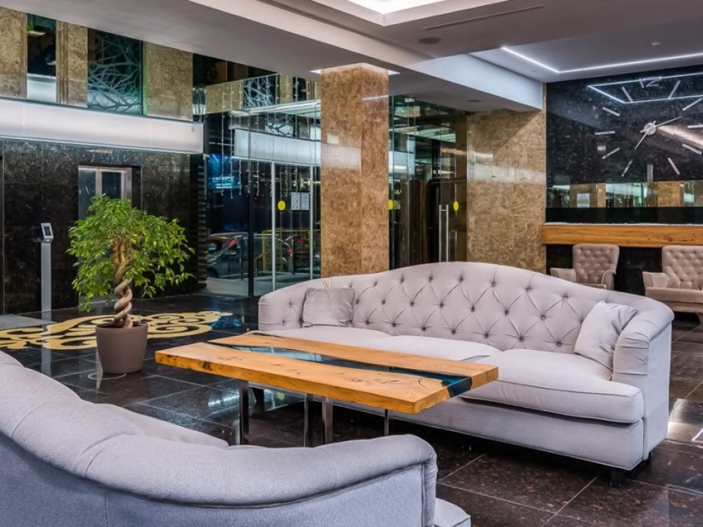 . В холле комплекса вас ждут различные услуги, например: лобби-бар, кабинет ногтевого сервиса и парикмахерских услуг, тренажерный зал, SPA-комплекс с массажным кабинетом, детская игровая комната, домашний кинотеатр, переговорная и сигарная комнаты.