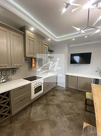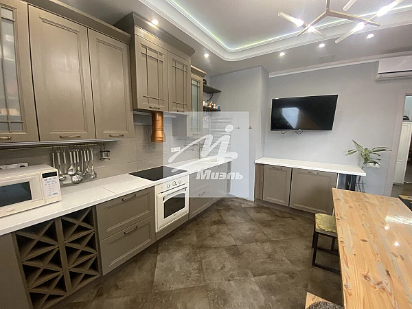 Квартира оснащена всей необходимой техникой, включая посудомоечную машину и кондиционер.