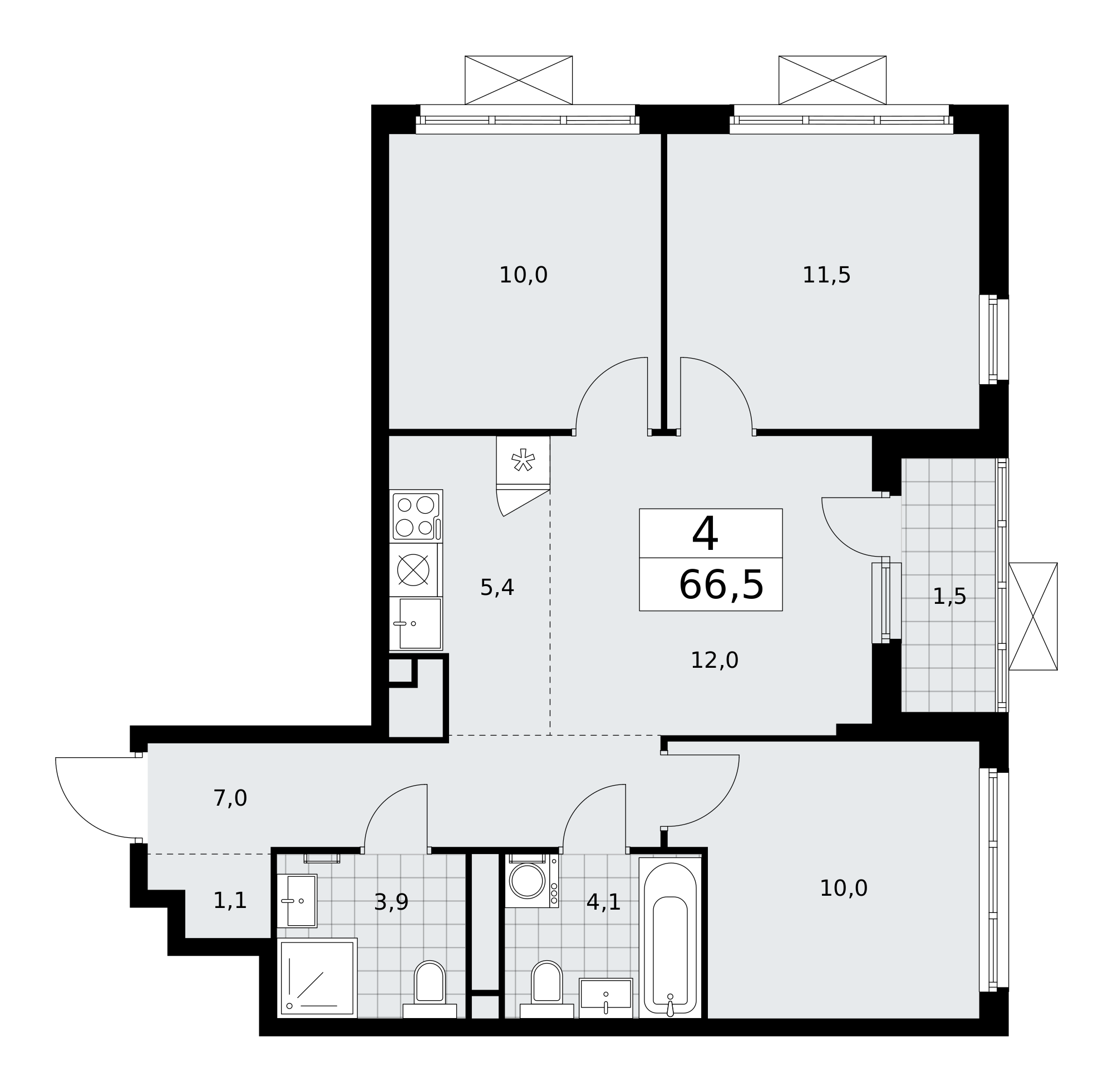 Купить 4к квартиру 66 м² в ЖК Прокшино