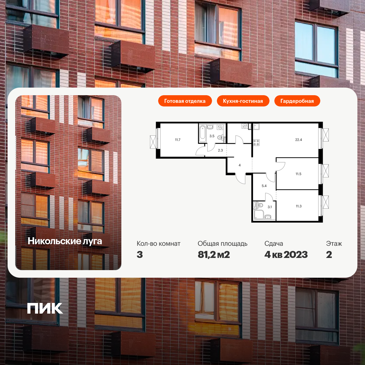 Купить 3к квартиру 81 м² в ЖК Никольские луга