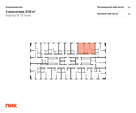 Продаётся 2-комн.квартира площадью 57.90 кв.м на 13 этаже 25 этажного дома (Корпус 9, секция 1) проекта ПИК Кузьминский лес. Светлый просторный подъезд на уровне земли, функциональная планировка, большие окна, с отделкой.