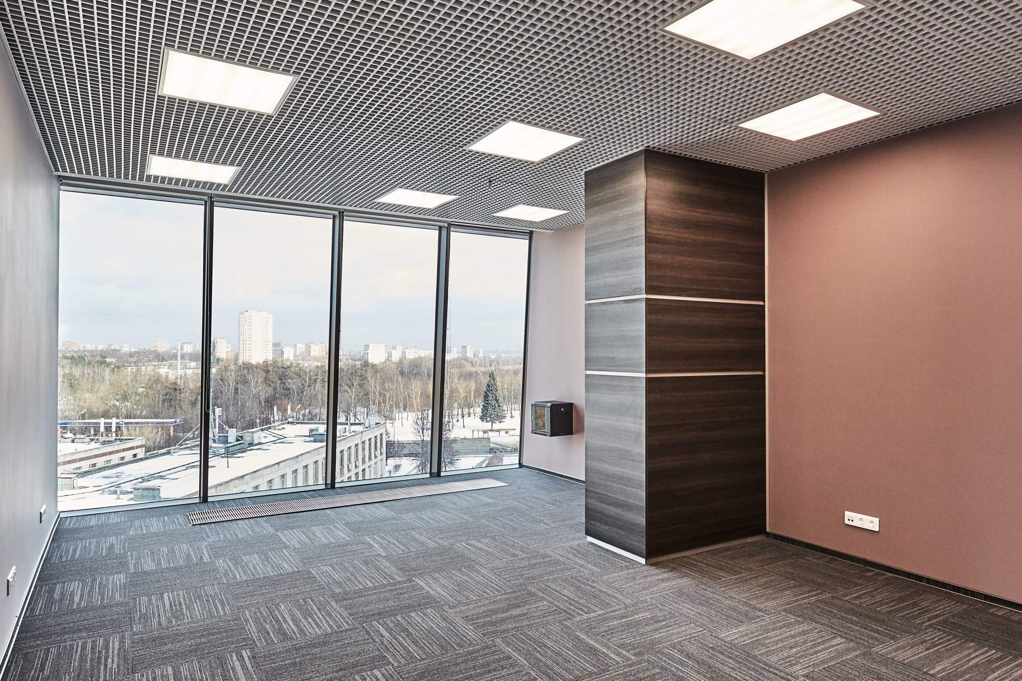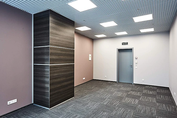 Отличная отделка: на полу ковровая плитка, потолок - грильято с led-освещением, индивидуальная приточно-вытяжная система кондиционирования - всегда свежий воздух нужной температуры.