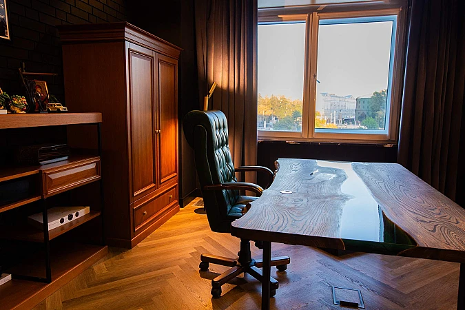 Дизайнерский ремонт: офис оформлен по индивидуальному проекту с использованием премиум-материалов.
