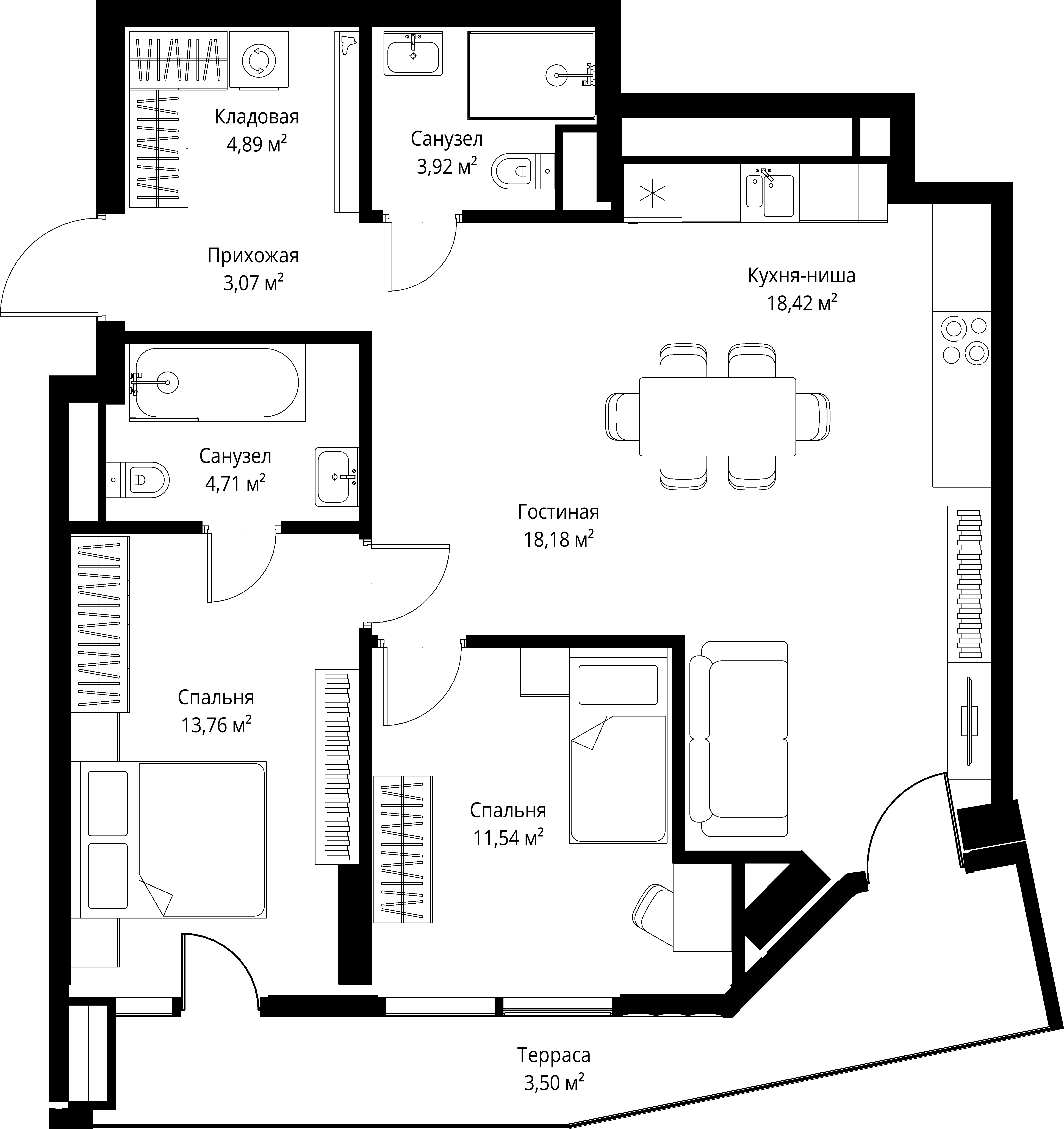 Купить 3к квартиру 82 м² в квартале Мневники от Гранель