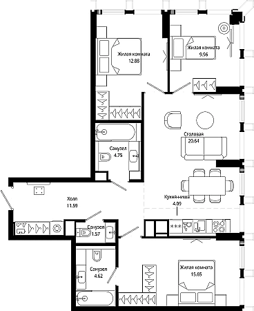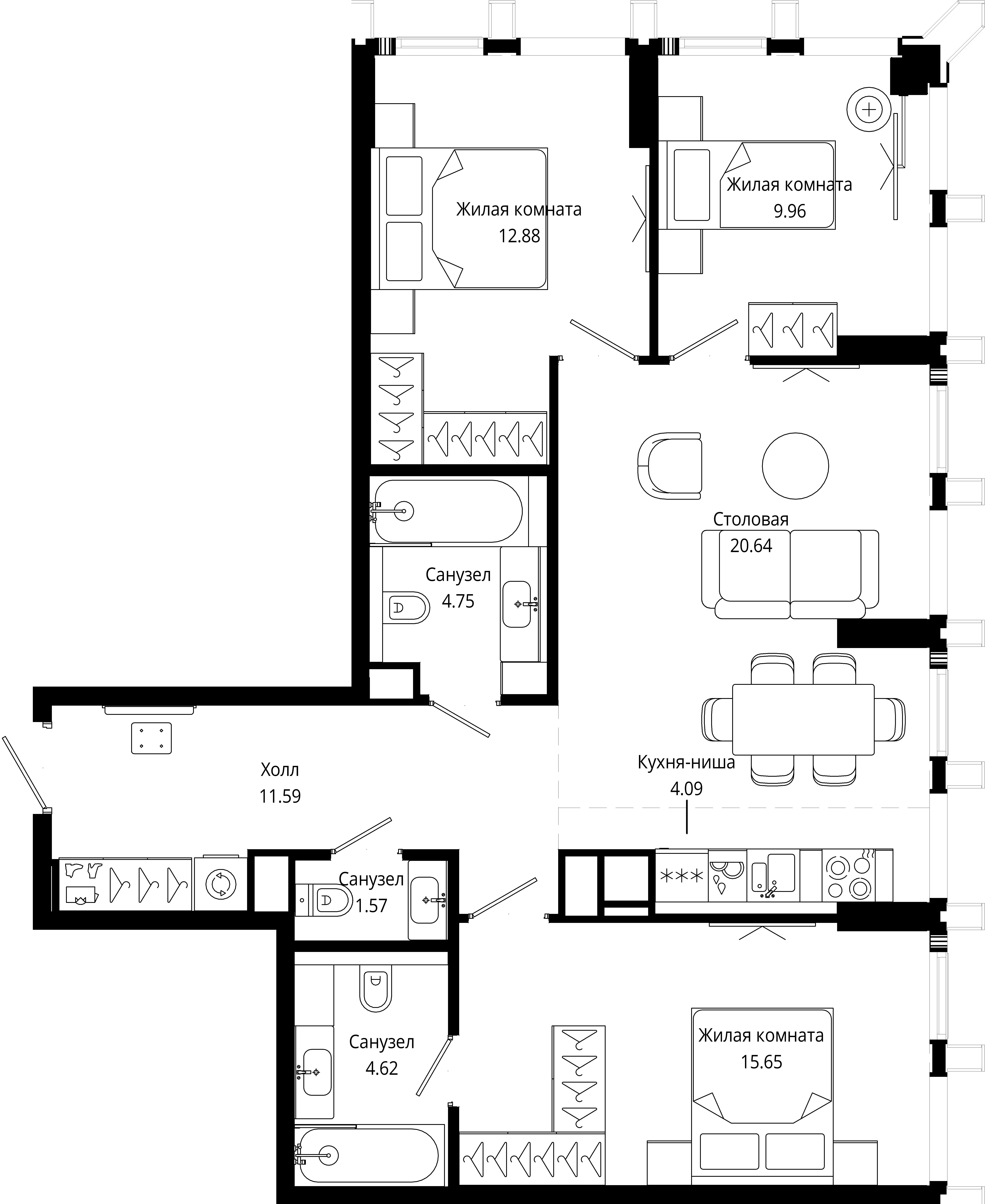 Купить 3к квартиру 85 м² в ЖК MOD (Мод)