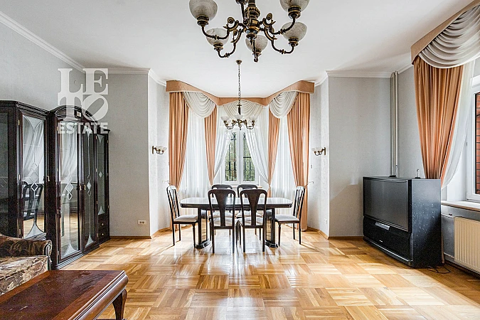 В доме выполнена качественная отделка, он продается с мебелью и техникой. На кухне кухонный гарнитур под единой столешницей со встроенной бытовой техникой. На полу наборный дубовый паркет. В гостиной много окон и света, благодаря наличию эркера. Есть дровяной камин, бильярдная с русским бильярдом, финская сауна. В котельной мощный напольный котел Viessman, новый бойлер на 300 литров, система водоподготовки.