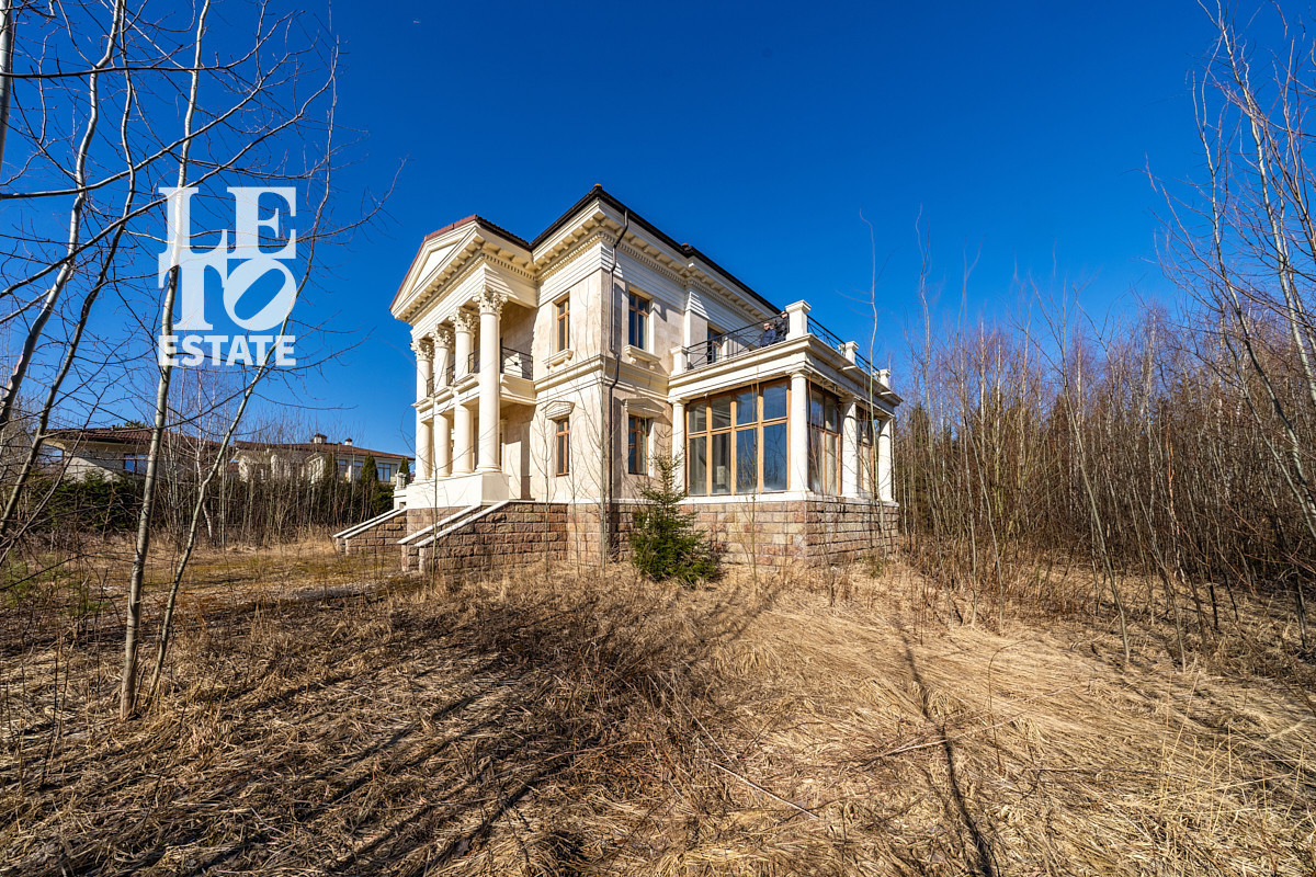Дом построен из керамического кирпича в классическом стиле с белоснежными колоннами и перилами балконов. Фасад отделан натуральным камнем (травертином). Дом без отделки.