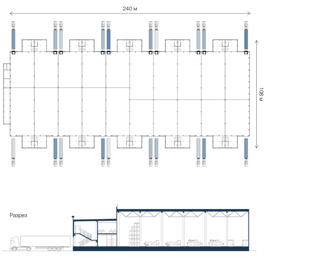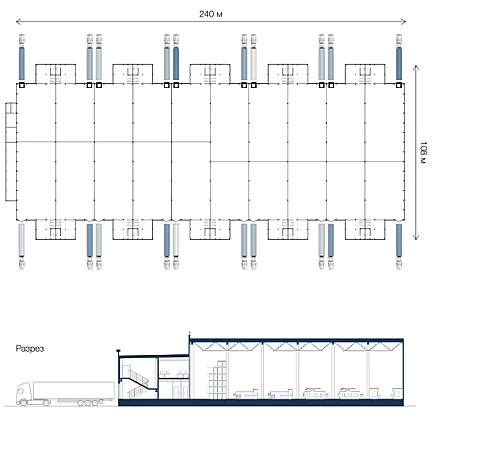 В каждом блоке ворота на 0 (нулевой отметке) или докового типа (на выбор).