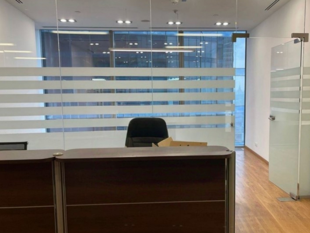. Офис расположен на 43-м этаже, смешанная планировка, выполнена отделка, своя кухня и с/у. Установлена приточная вентиляция и кондиционирование.