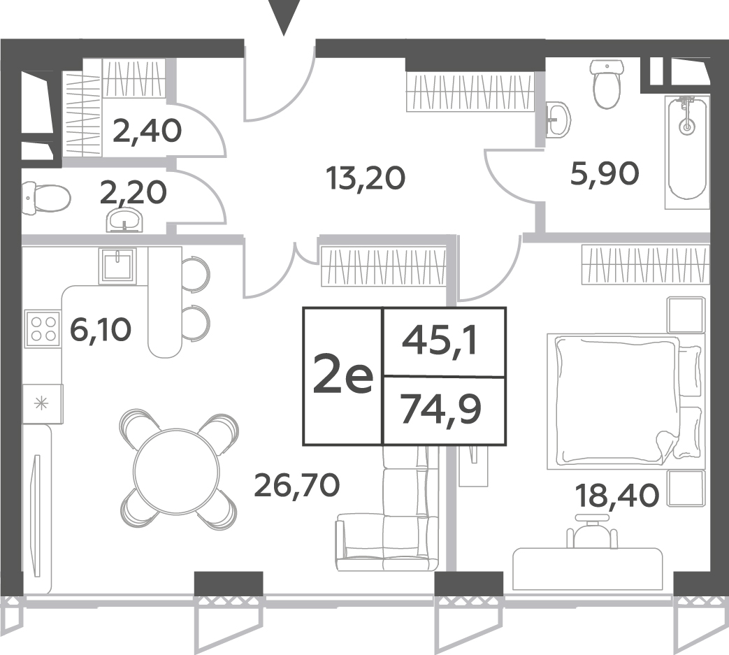 Общая площадь квартиры – 74,3 м2. Свободная планировка, высокие (3.1 м) потолки и панорамные окна (высотой 2,7 м с функцией проветривания) - идеальная отправная точка для проектирования и дизайна квартиры вашей мечты. Из квартиры открываются фантастические панорамные виды на МГУ и Ботанический сад, Пойму реки Раменка. В данной планировке предусмотрена изолированная спальная комната и комфортная кухня-гостиная, а так же гардеробная комната. В этой квартире восходящее солнце подарит Вам хорошее настроение уже с утра. Кроме того, восточная часть жилья считается ответственной за семейную жизнь по фэншую, так что в такой квартире будет и хорошая энергетика.