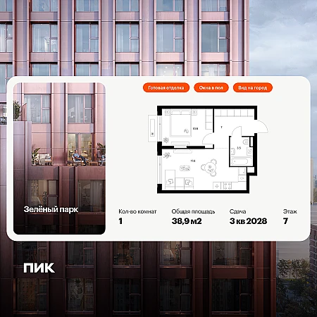 Купить 1к квартиру 37 м² в ЖК Середневский лес