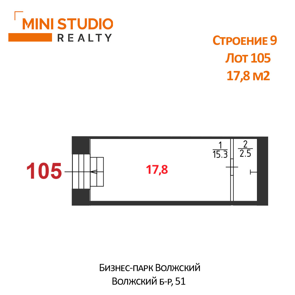Помещения под чистовую отделку: мини-офис или торговая точка. Лот 102 на плане, расположен в корпусе 9 на 1-м этаже. Установлены: качественная входная дверь, вытяжная вентиляция, радиатор отопления, электросчетчик, автомат на 5 кВт, выходы хв/гв.