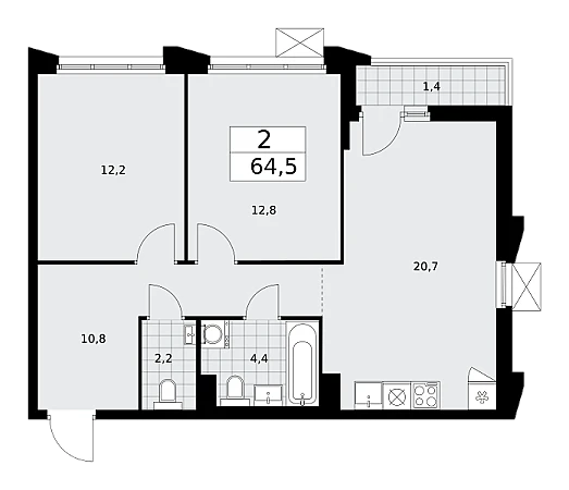 Купить 2к квартиру 64 м² в ЖК Деснаречье