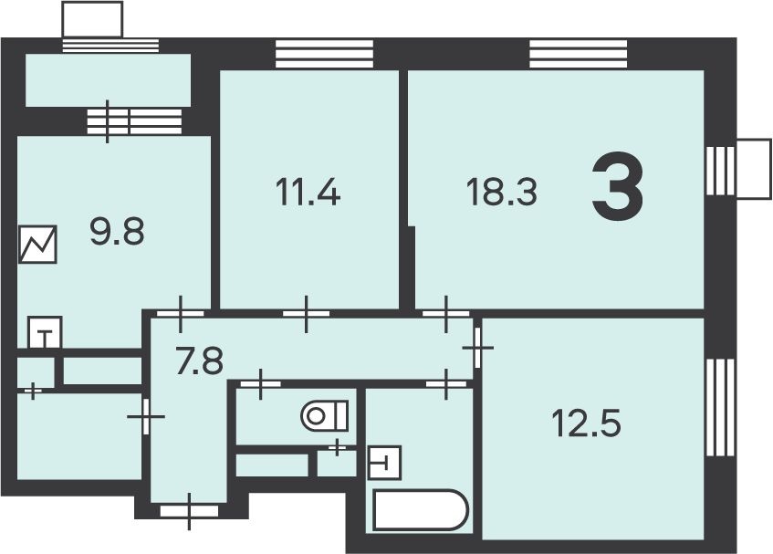 Оконные блоки в комнатах выполнены из ПВХ с двухкамерными стеклопакетами.