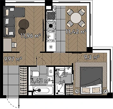 Квартира-линейка, комнаты смежно-изолированные, Н=2.6м, общая площадь: 46.2м2+3.8м2 (балкон)=50м2, жилая: 31.2м2, кухня: 8.5м2, гардеробная, большой балкон-остеклен и утеплен.