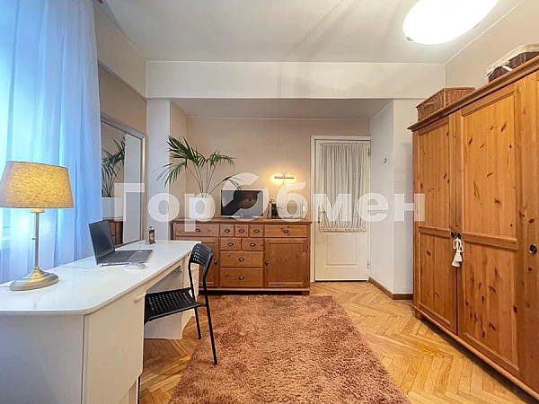 Общая площадь квартиры 56 м2, из них жилая 42 м2, кухня 4.5 м2 с новым гарнитуром и всей необходимой бытовой техникой (газовая варочная панель, духовка, печка СВЧ, холодильник..). Спальня 12 м2, Большая гостиная 19 м2 с выходом на застеклённый балкон. Кабинет 11 м2. Совмещённый санузел. Высота потолков 2.75 м.
