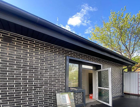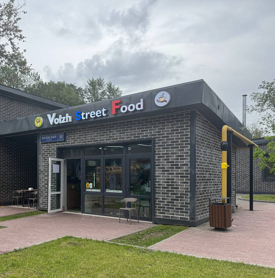 Отделка фасадов выполнена панелями с имитацией клинкерного кирпича. Дополнительно на территории организованы зоны отдыха на свежем воздухе, также дополнительно имеется возможность для организации летних веранд и кафе.