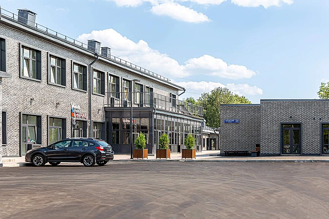 Отделка фасадов выполнена панелями с имитацией клинкерного кирпича. Дополнительно на территории организованы зоны отдыха на свежем воздухе, также дополнительно имеется возможность для организации летних веранд и кафе.