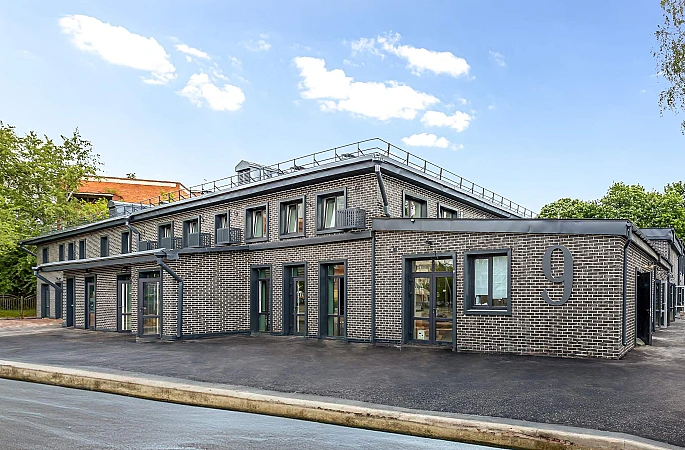Отделка фасадов выполнена панелями с имитацией клинкерного кирпича. Дополнительно на территории организованы зоны отдыха на свежем воздухе, также дополнительно имеется возможность для организации летних веранд и кафе.