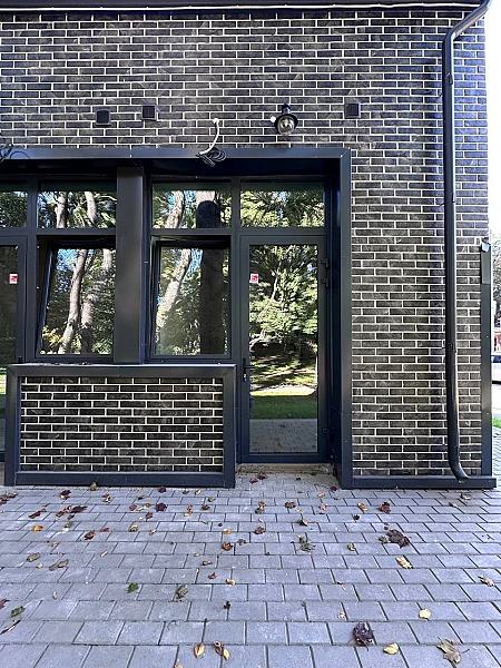 Отделка фасадов выполнена панелями с имитацией клинкерного кирпича. Дополнительно на территории организованы зоны отдыха на свежем воздухе, также дополнительно имеется возможность для организации летних веранд и кафе.