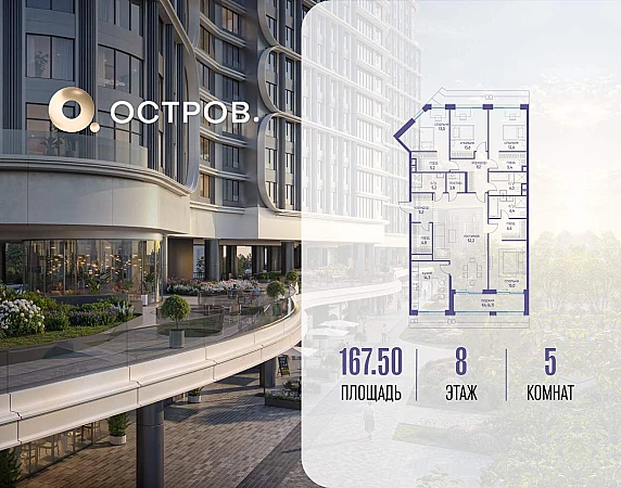 Продаётся квартира от застройщика: общая площадь 167.50 м, жилая 106.40 м, кухня 14.30 м, 8-й этаж, жилой квартал «Остров 7», корпус 6 (секция 2) . Срок сдачи: 3 квартал 2028 года.