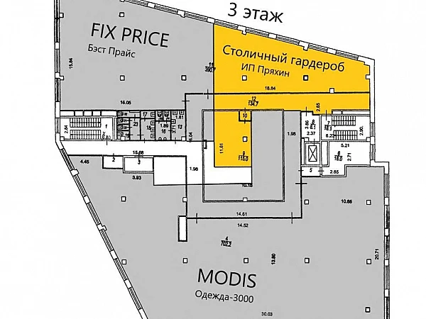 Помещение расположено по адресу Бауманская улица 32 в ТЦ Елоховский Пассаж на 3 этаже. Площадь помещения 752.7 кв.м.