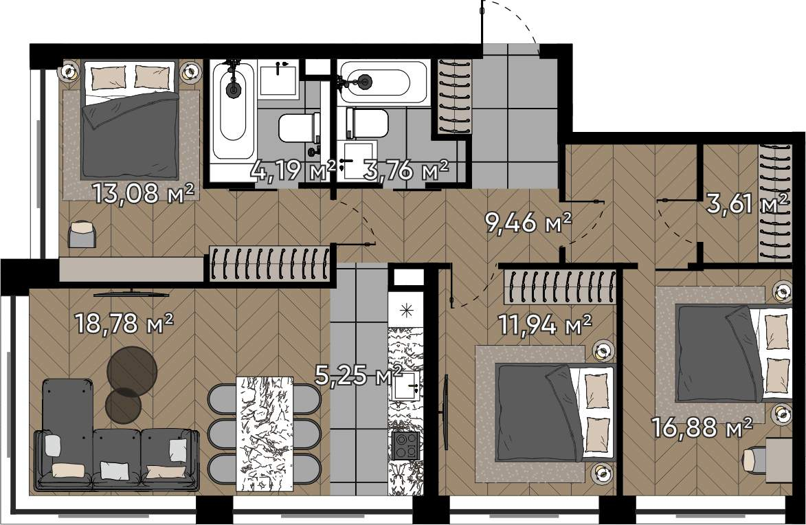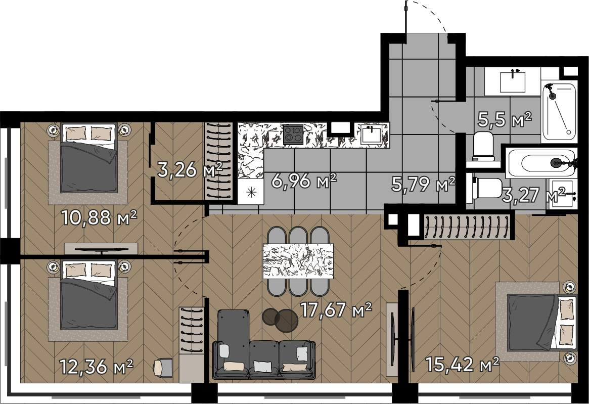 Готовое к проживанию решение в престижном жилом комплексе с благоприятной инфраструктурой.