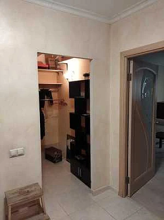 Большой холл, направо спальня, налево кухня и гостиная. Санузел раздельный.