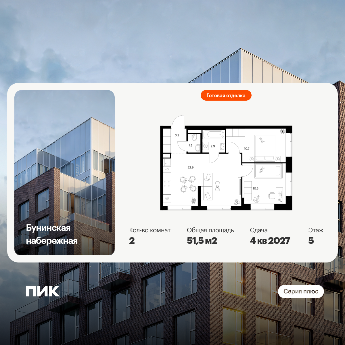 Купить 2к квартиру 58 м² в ЖК Саларьево парк