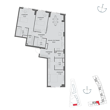 Купить 3к квартиру 107 м² в ЖК Событие
