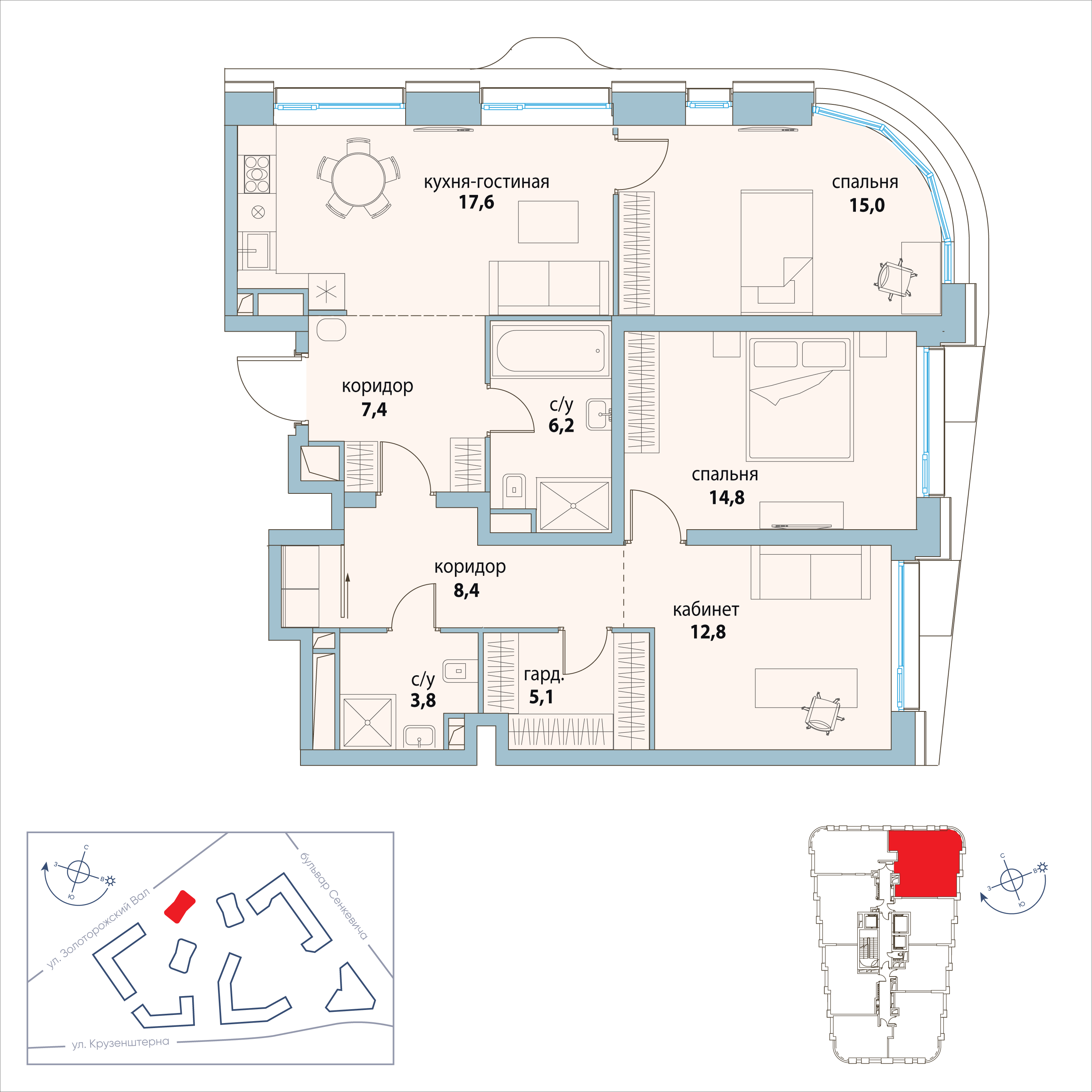 Главная Купить квартиру в Москве и МО 3к квартира 91 м² в ЖК Символ