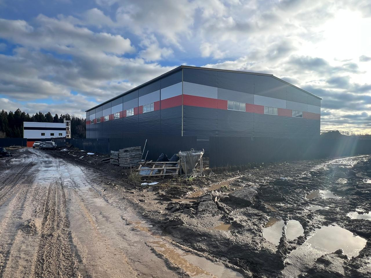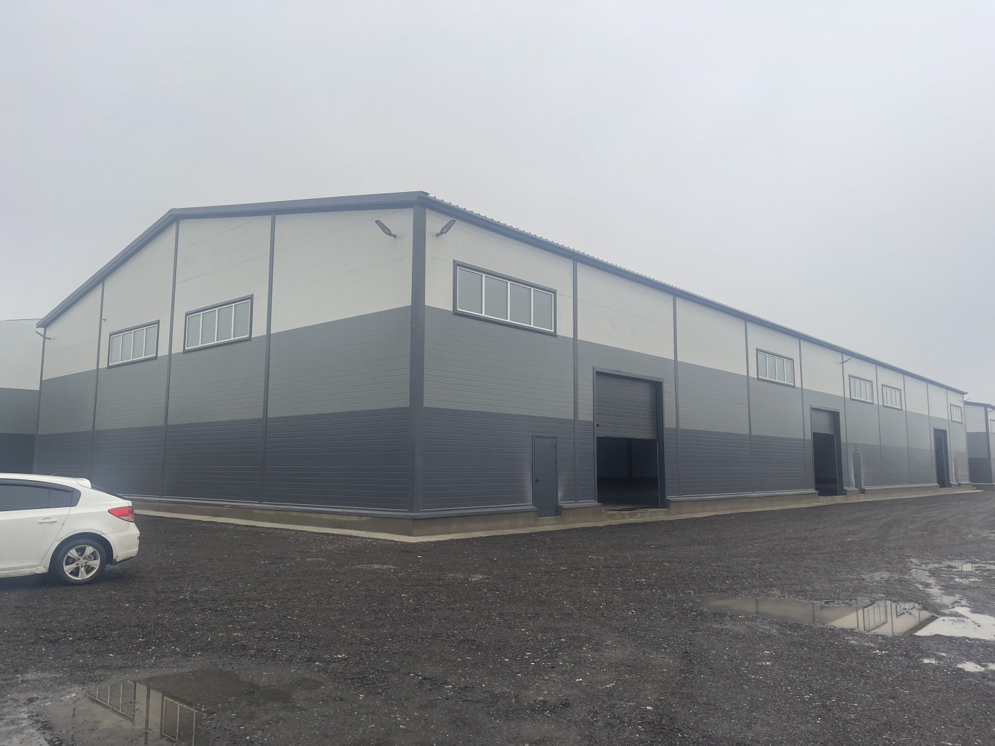3. Новый склад 1022 м2(высота по стене - 6 м, в коньке – 8,5 м, 2 ворот Алютех 4,20х4,50м, электричество: освещение и розетки 220 и 380, утепленные сэндвич-панели стены 10 см и крыша 12 см, внутри сделан 2 этажный офис, санузлы, бытовые помещения, офисы, полы антипыль 2 армирование- 8 тн/1м2);