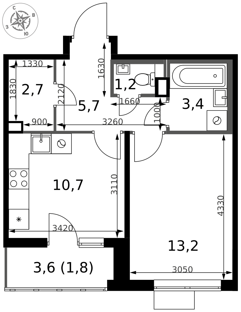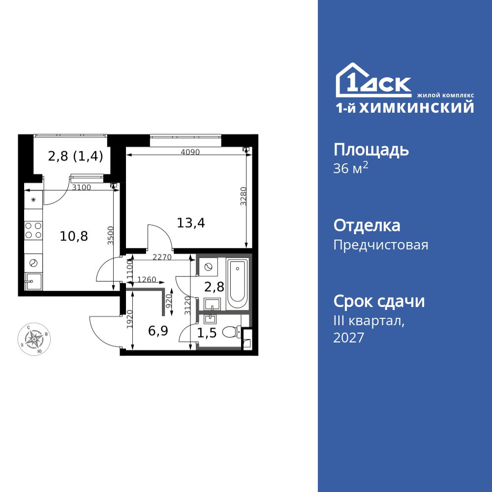 Купить 1к квартиру 44 м²