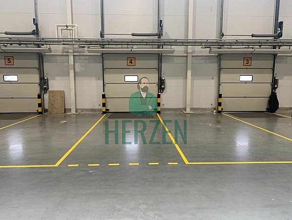 Ровный бетонный пол с антипылевым покрытием. Допустимая нагрузка 10 т/м2.