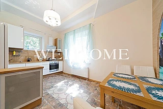 Мебель, оборудование: в интерьере – полная комплектация фирменной дорогостоящей мебели, оборудования и аксессуаров. На кухне – гарнитур LIGRON (22.000 EURO) с фасадами из массива дуба в двух цветовых исполнениях, столешница из акрилового камня, фартук, оформленный испанской керамической плиткой, установлена вся необходимая техника (холодильник Liebherr, духовой шкаф и варочная поверхность Siemens). В гостиной – комплект мягкой мебели из кожи. В спальнях – комплекты спальных гарнитуров, шкафы, телевизоры. В санузлах установлена импортная сантехника.