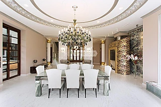 1 этаж: кухня-гостиная, столовая, кабинет, спальня, с/у, бассейн, сауна, гардеробная, комната персонала, техническое помещение, хаммам, холл;