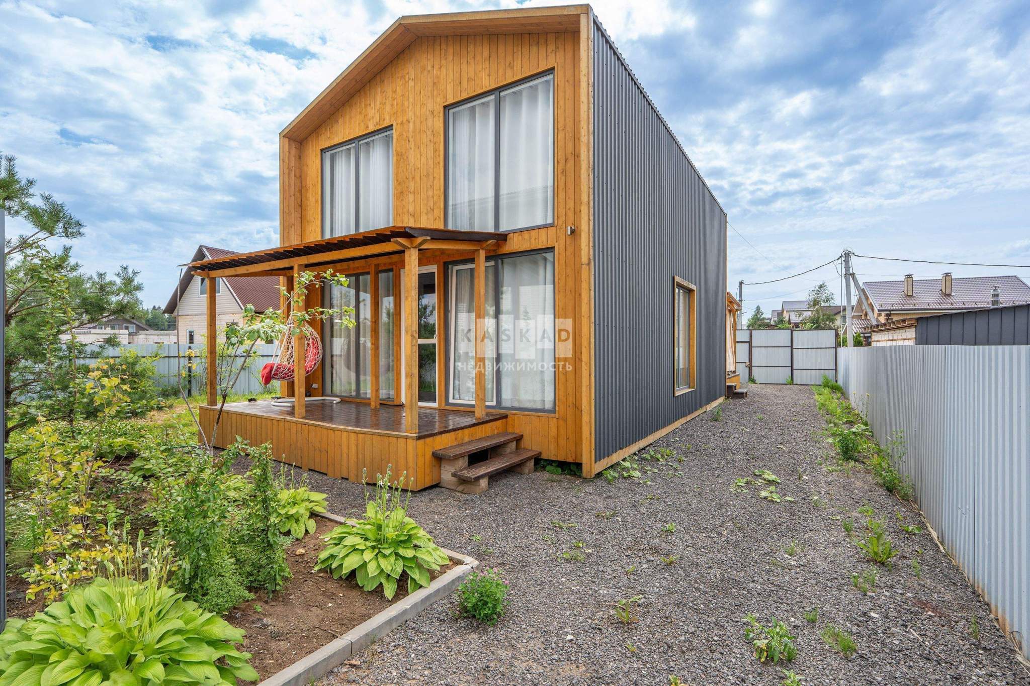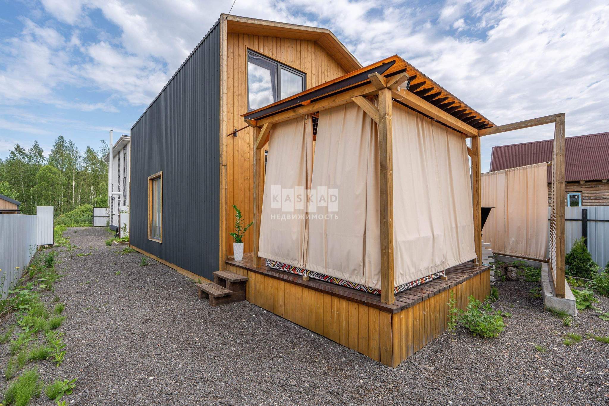 Второй объект - гостевой дом, выполненный в стиле «Barn House», площадью 80 кв.м. Он полностью меблирован и готов к проживанию, предлагая уютный и гармоничный интерьер с высокими потолками и открытым пространством. Этот дом станет отличным местом для приема гостей или временного проживания.