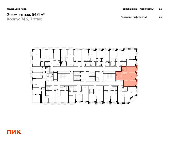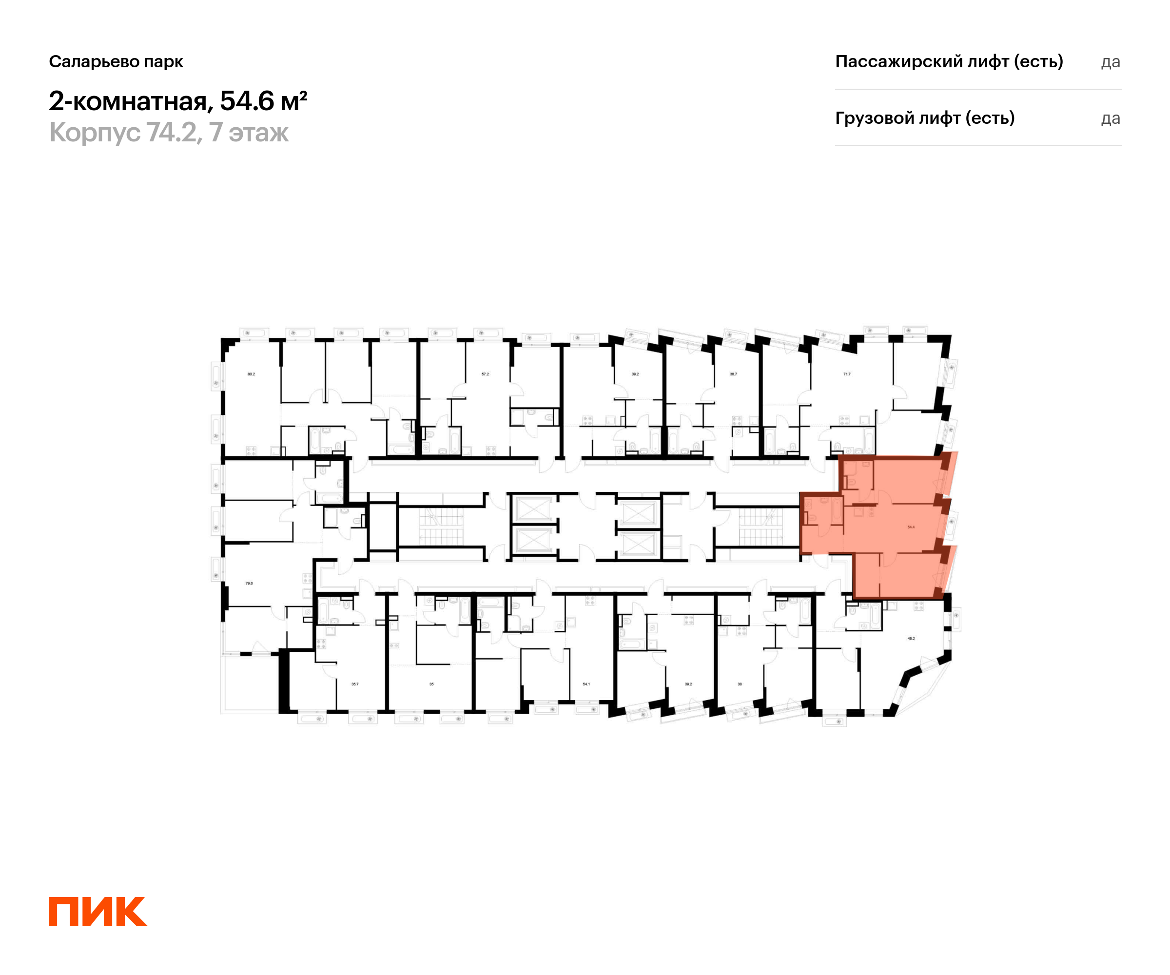 Продаётся 2-комн.квартира площадью 54.60 кв.м на 7 этаже 18 этажного дома (Корпус 74.2, секция 2) проекта ПИК Саларьево парк. Светлый просторный подъезд на уровне земли, функциональная планировка, большие окна, с отделкой.
