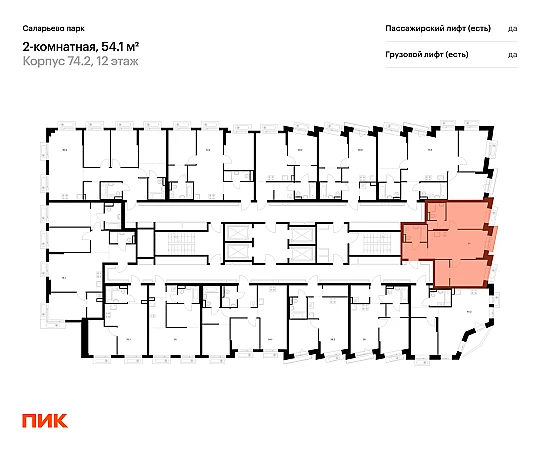 Продаётся 2-комн.квартира площадью 54.10 кв.м на 12 этаже 18 этажного дома (Корпус 74.2, секция 2) проекта ПИК Саларьево парк. Светлый просторный подъезд на уровне земли, функциональная планировка, большие окна, с отделкой.