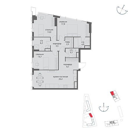 Купить 3к квартиру 99 м² в ЖК Событие