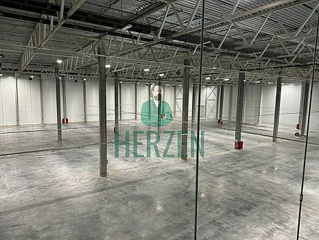 Ровный бетонный пол с антипылевым покрытием. Допустимая нагрузка на пол 8 т/м2