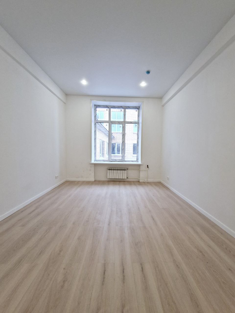 На стенах поклеены обои под покраску, на полу постелен ламинат с плинтусами и откосами. Есть вытяжная вентиляция в санузле и на кухне, выходы хв/гв, место под раковину на кухне. Кроме того, в помещениях уже есть выключатели освещения, розетки для бытовой техники и роутера, а также сделаны закладные для оптоволокна для интернета.