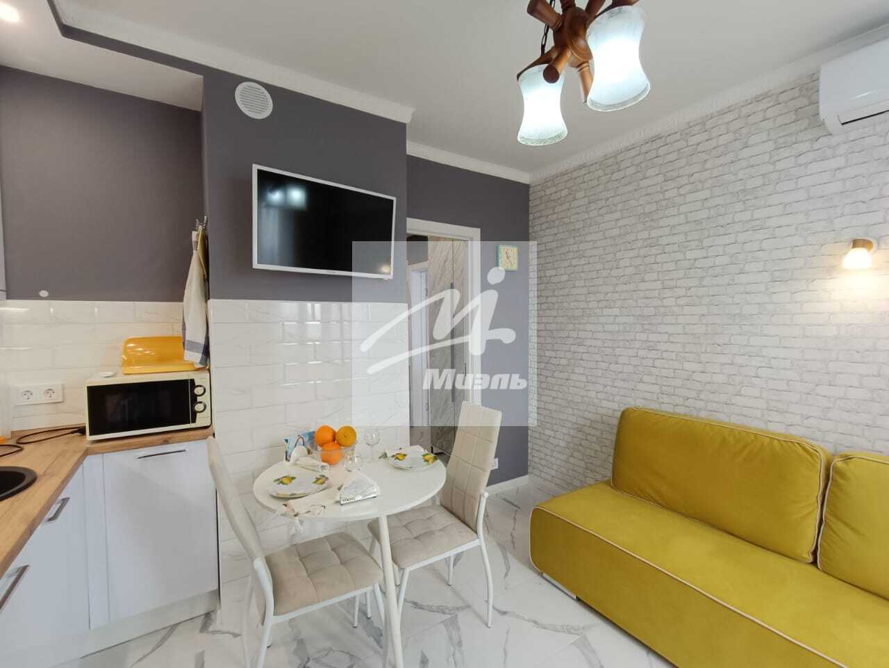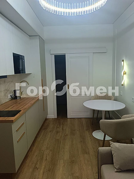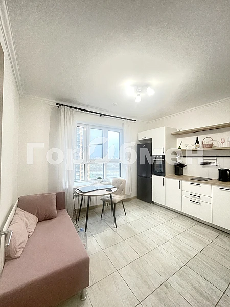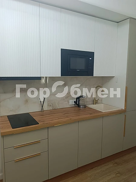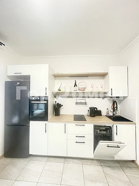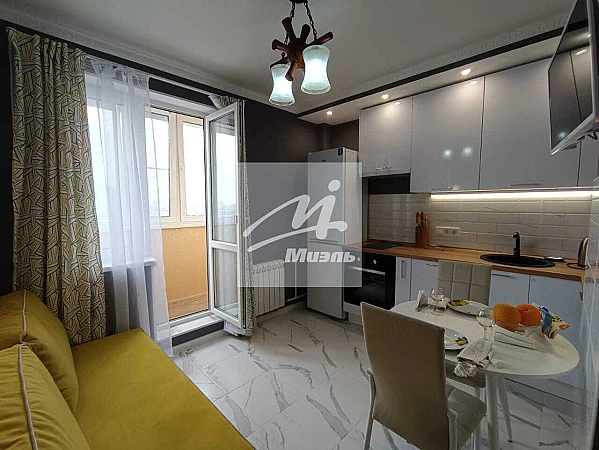 Кухня 10.1 кв.м.с имеет выход на балкон с подсветкой и потрясающим видом на город! Оборудована всей необходимой техникой - холодильник двухкамерный «No frost», индукционная плита двух конфорочная с независимым духовым шкафом, встроенная посудомоечная машина, СВЧ печь, чайник, встроенная вытяжка. Установлена сплит система. Обеденный стол, стулья, диван (раскладной), телевизор. Имеется вся необходимая посуда.