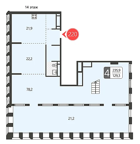 Апартаменты, назначение: нежилое помещение, общая площадь 191,2 кв. м, этаж: 27.