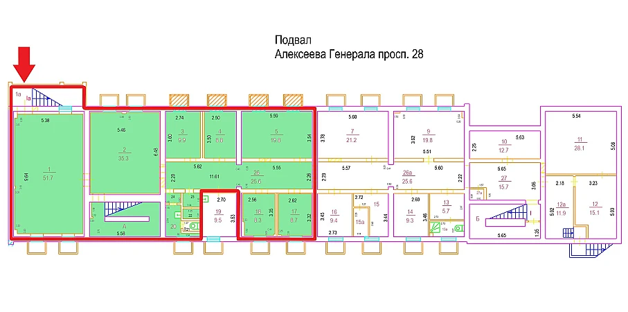 Нежилое помещение, 186 м² | ЗелАО, г. Зеленоград, пр-т Генерала Алексеева, д. 28, Подвал № 0 | Метро: Зеленоград-Крюково (пешком 0 мин., транспортом 0 мин., расстояние 3.54 км)