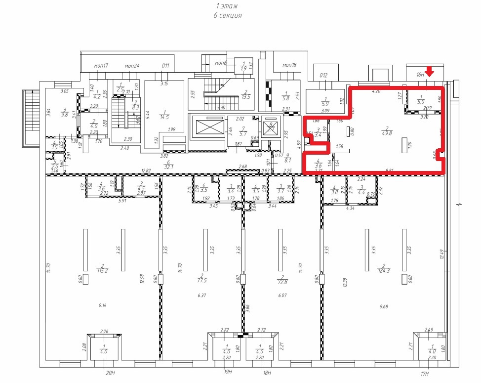 Нежилое помещение, 61,8 м² | ЮАО, 6-я Радиальная ул., д. 7/1, корп. 1, этаж 1, пом. 16Н | Метро: Царицыно (пешком 39 мин., транспортом 34 мин., расстояние 1.68 км)
