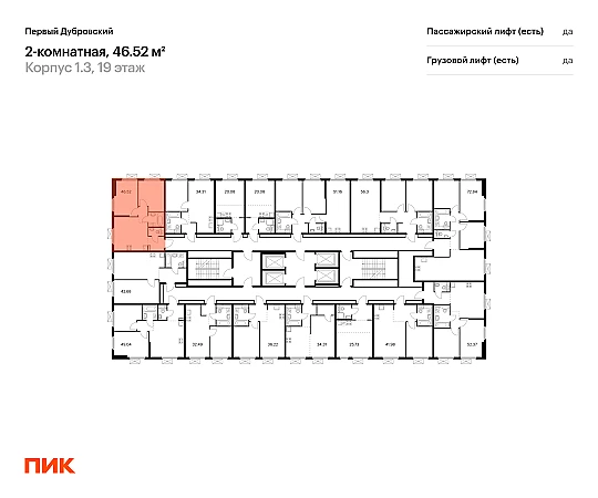 Продаётся 2-комн.квартира площадью 46.52 кв.м на 30 этаже 33 этажного дома (Корпус 1.3, секция 1) проекта ПИК Первый Дубровский. Светлый просторный подъезд на уровне земли, функциональная планировка, большие окна, с отделкой.