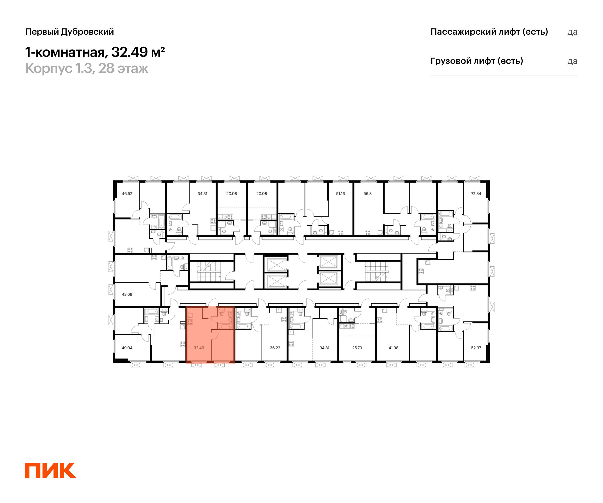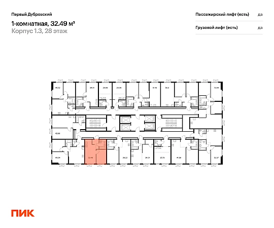 Продаётся 1-комн.квартира площадью 32.49 кв.м на 32 этаже 33 этажного дома (Корпус 1.3, секция 1) проекта ПИК Первый Дубровский. Светлый просторный подъезд на уровне земли, функциональная планировка, большие окна, с отделкой.